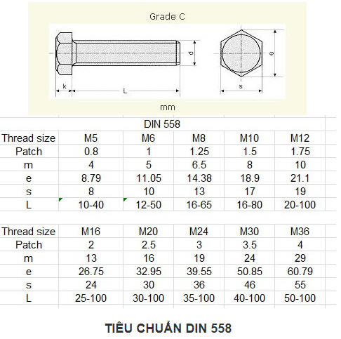 BẢNG TRA TIÊU CHUẨN CỦA BU LÔNG