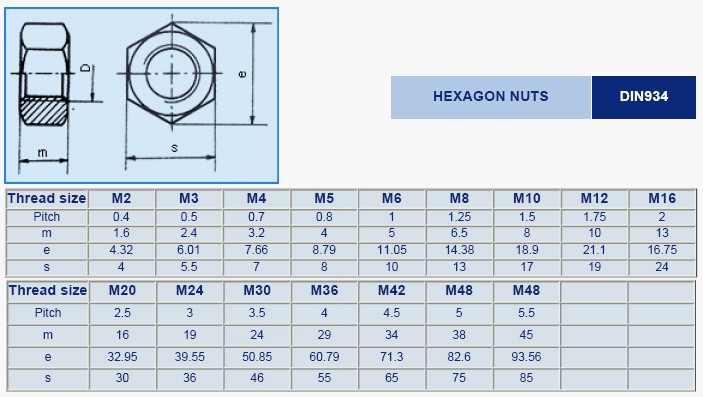 Bảng tra đai ốc (Ecu) chuẩn DIN 934